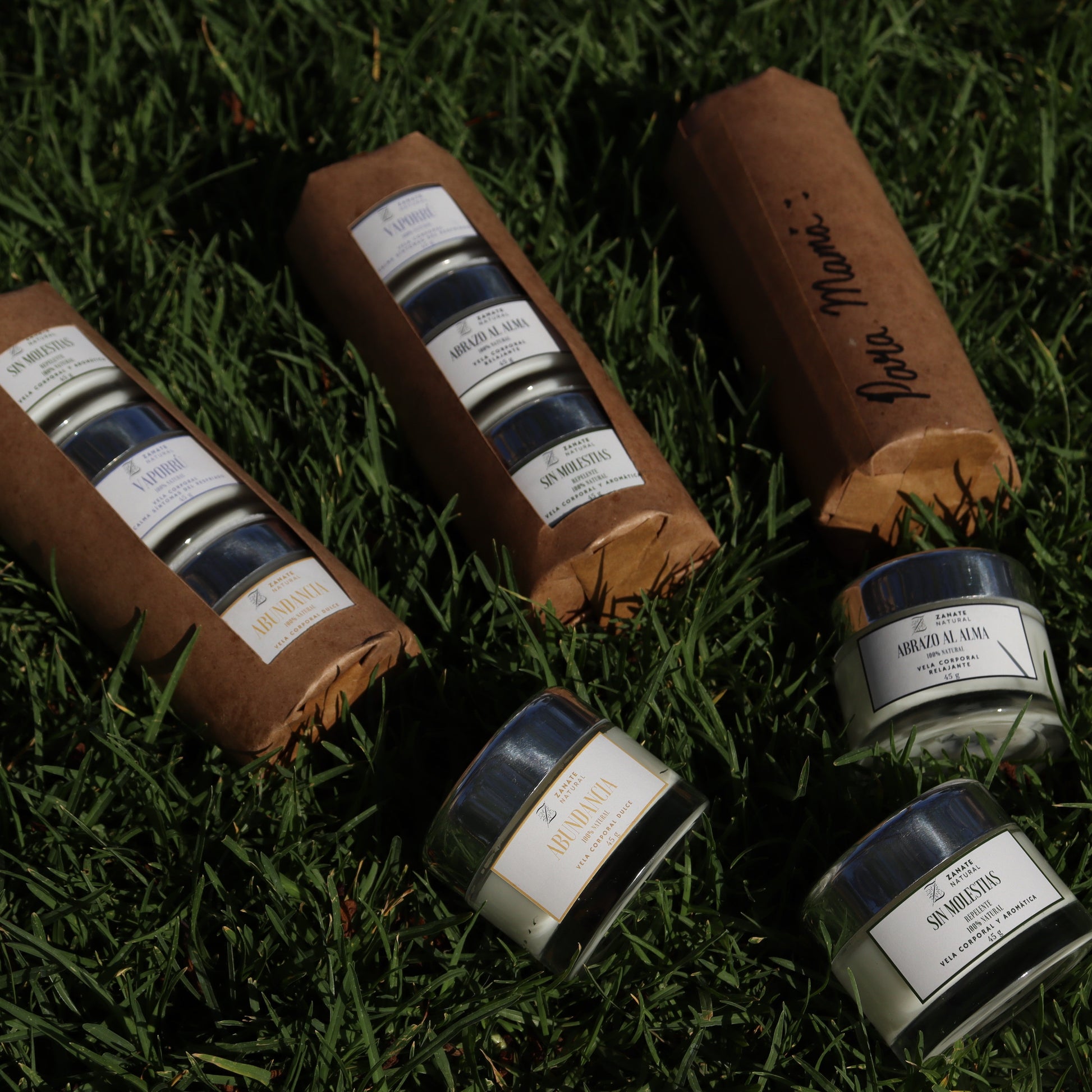 ¿No sabes por dónde empezar? El Discovery set de 3 de Zanate Natural te guía suavemente: contiene dos de nuestras velas esenciales — Sin Molestias y Vaporru — y te permite elegir una tercera de nuestra línea de lujo: Abrazo al Alma o Abundancia .
