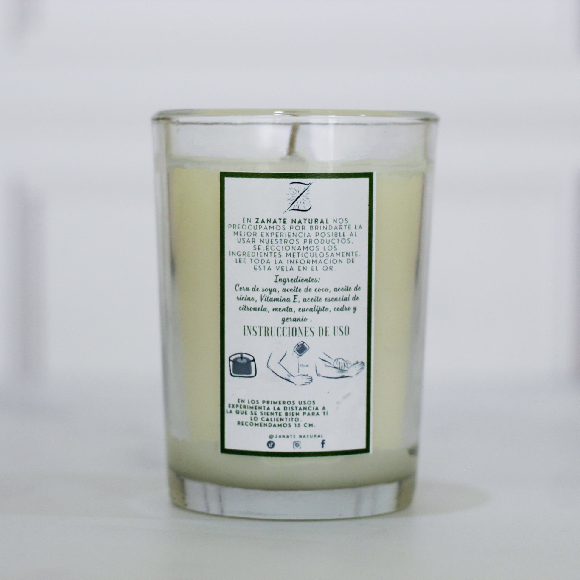 Esta vela fue creada pensando en una solución natural y efectiva para repeler mosquitos e insectos, mientras cuida y nutre la piel. Gracias a la combinación de citronela y geranio, actúa como un potente repelente natural, mientras que la menta y el eucalipto aportan frescura y alivio en la piel, ideal para calmar cualquier irritación. La base de cera de soja, aceite de coco y ricino hidratan profundamente, dejando una sensación suave y protegida. La vitamina E ayuda a regenerar y mantener la piel en su estado óptimo. Es un producto ideal para quienes buscan bienestar y protección sin químicos agresivos.