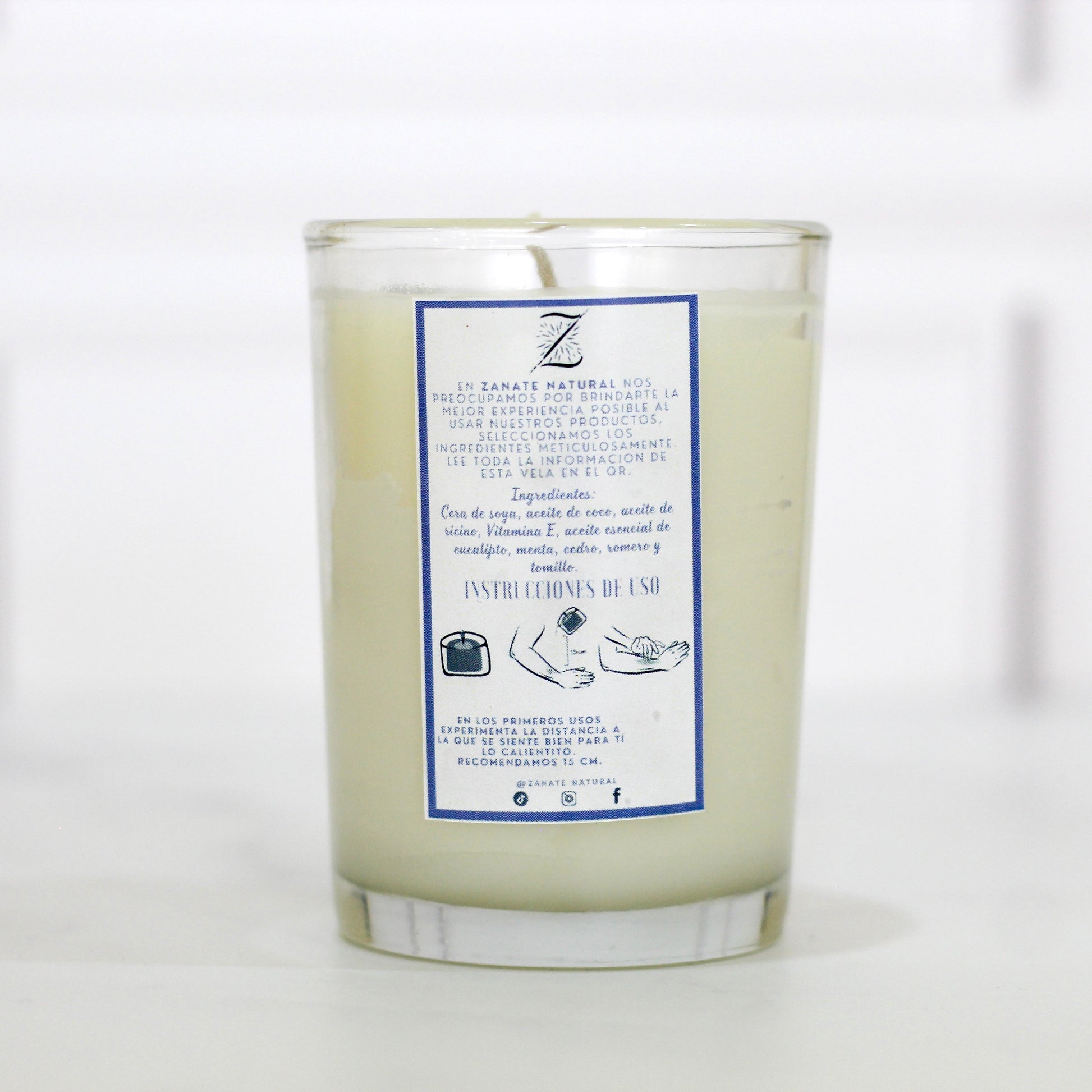 Inspirada en los remedios naturales de las abuelas, esta vela fue diseñada para aliviar síntomas de congestión y malestar respiratorio de forma suave y natural. La poderosa mezcla de aceites esenciales de eucalipto, menta, romero y tomillo ayuda a despejar las vías respiratorias, mientras que el cedro aporta una sensación de calma. La base hidratante de cera de soya, aceite de coco y ricino cuida y nutre la piel, proporcionando alivio durante los momentos de malestar. Es la opción ideal para quienes buscan un apoyo natural en épocas de resfriado o simplemente para purificar el aire.